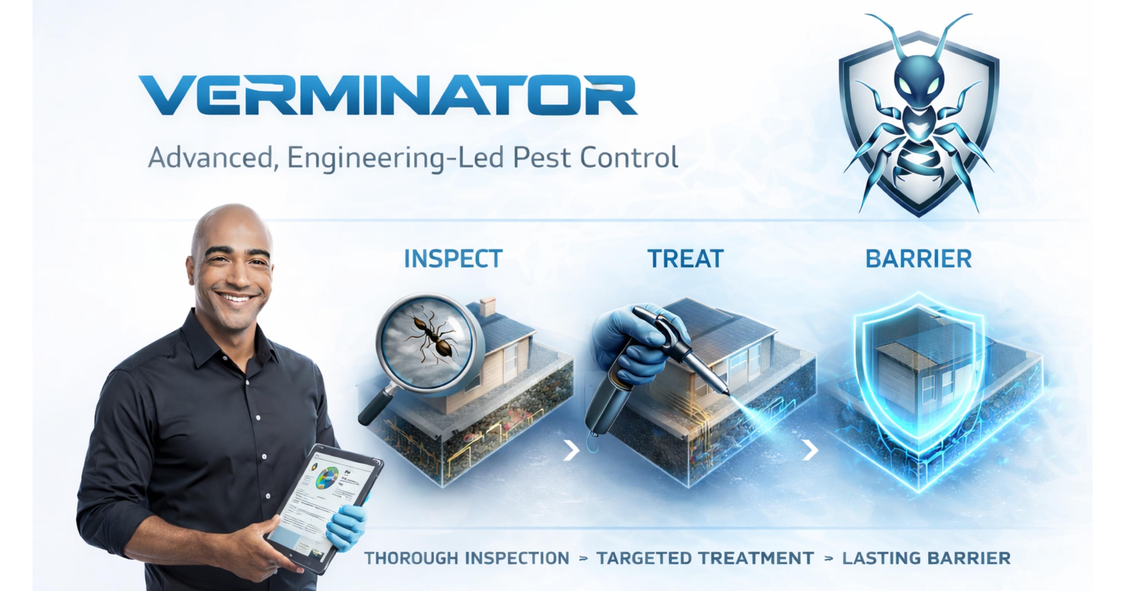 Colony-focused baiting, perimeter barriers, and follow-up where your programme applies.
